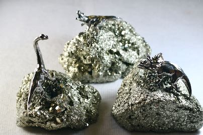 パイライト(黄鉄鉱)に恐竜が付いたユニークなヒーリングストーンが入荷しました! 良くできてます!金属…